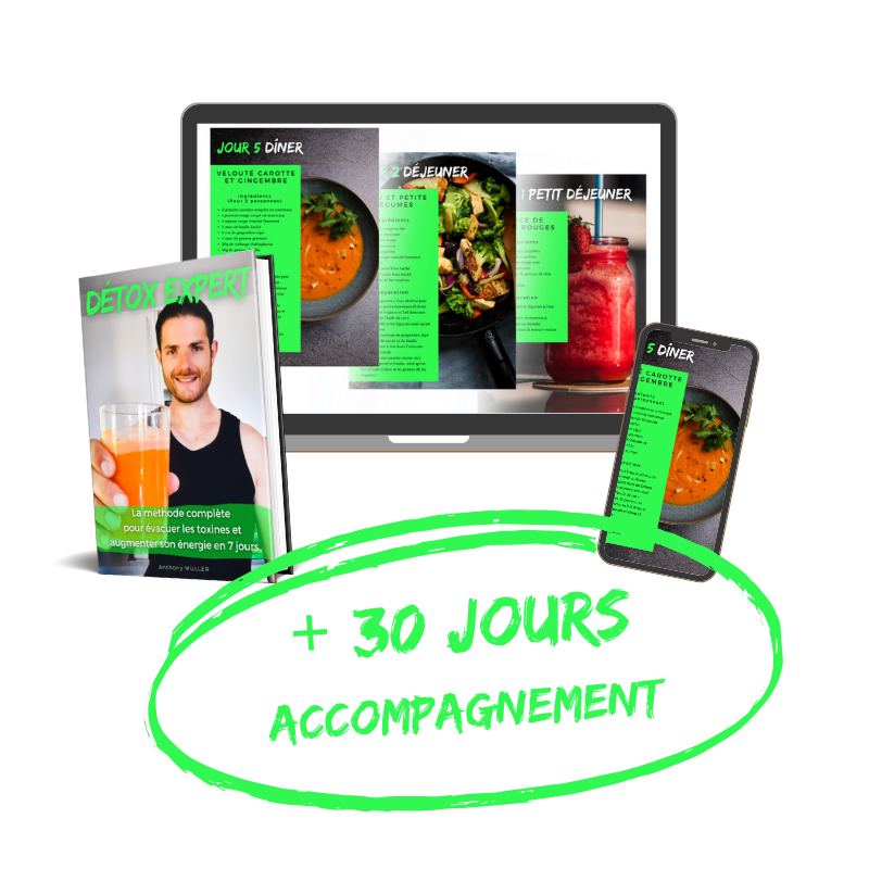 La différence entre les 2 versions est l'accompagnement de 30 jours. Celui-ci nous permet de rester en contact régulièrement tout au long de votre détox, puis de mettre en place des habitudes saines via l'application dédiée (alimentation, sport, etc...).